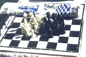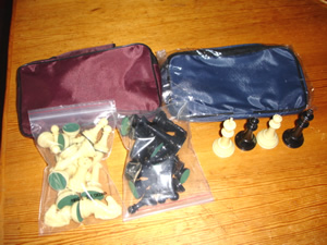 gewicht en uitgekiende prijs zeer gewild. Passen met oprolbord perfect in getoonde opbergzak. Winkelprijs € 5,40 (incl. BTW) Zes stuks: € 4,32 franco. Samen met bord en zak met opdruk van Capablanca en Lasker, € 10,25 (incl. BTW) Zes stuks: € 8,20 franco. Gewicht per schaakstel: 350 gram. Los door ons herverpakt. Hoogte Koning 88 mm. |